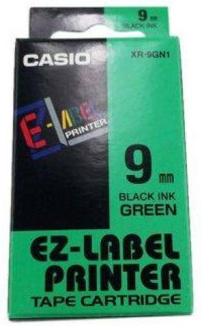 páska CASIO XR-9GN1 Black On Green Tape EZ Label Printer (9mm)